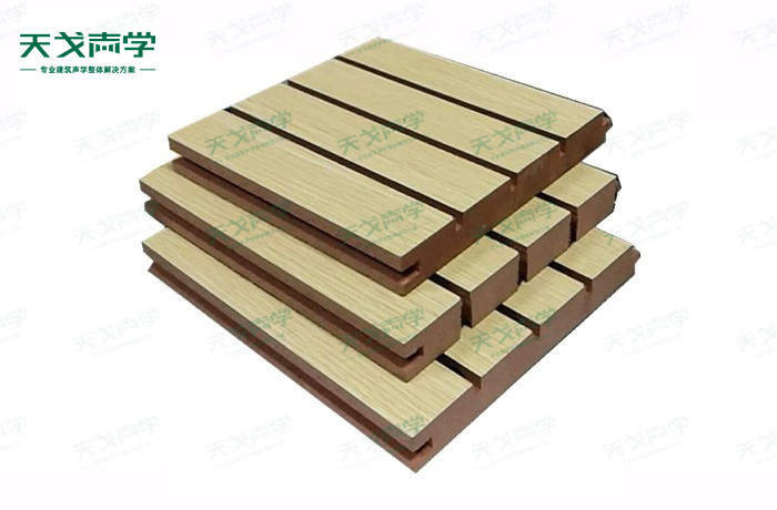 天戈報告廳硬木條吸音板是一種在密度板的正面開槽、背面穿孔的狹縫共振吸音材料。槽木吸音板對吸聲頻譜選擇性很強,對中低頻有很好的吸聲性能。若在吸聲結(jié)構(gòu)后空腔填入適量的吸聲棉可提高中、高頻吸聲效果,標(biāo)準(zhǔn)化模塊設(shè)計,采用插槽、龍骨結(jié)構(gòu),安裝簡易,可用于學(xué)術(shù)報告廳建筑設(shè)計中的墻面或天花裝飾。