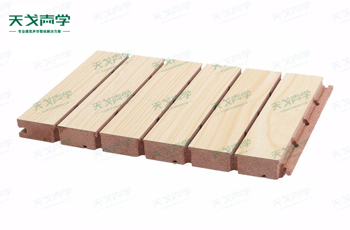 天戈錄音室槽木吸音板是一種在密度板的正面開(kāi)槽、背面穿孔的狹縫共振吸音材料。槽木吸音板對(duì)吸聲頻譜選擇性很強(qiáng),對(duì)中低頻有很好的吸聲性能。若在吸聲結(jié)構(gòu)后空腔填入適量的吸聲棉可提高中、高頻吸聲效果,標(biāo)準(zhǔn)化模塊設(shè)計(jì),采用插槽、龍骨結(jié)構(gòu),安裝簡(jiǎn)易,常用于墻面或天花裝飾。