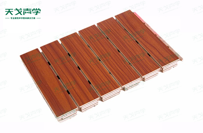 天戈錄音棚槽木吸音板是一種在密度板的正面開槽、背面穿孔的狹縫共振吸音材料。槽木吸音板對(duì)吸聲頻譜選擇性很強(qiáng),對(duì)中低頻有很好的吸聲性能。若在錄音棚吸音板后空腔填入適量的吸聲棉可提高中、高頻吸聲效果,標(biāo)準(zhǔn)化模塊設(shè)計(jì),采用插槽、龍骨結(jié)構(gòu),安裝簡(jiǎn)易,常用于墻面或天花裝飾。