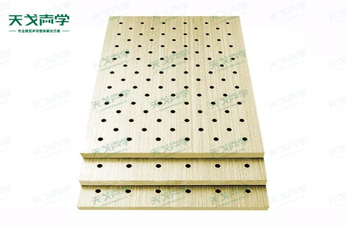 天戈試音室吸音板飾面顏色及材料選擇性廣,孔徑、孔距可根據(jù)客戶要求調(diào)整,能很好地滿足客戶多樣化的聲學(xué)及裝飾需求。孔木吸音板對吸聲頻譜選擇性較強(qiáng),對中低頻有很好的吸聲性能。如在吸聲結(jié)構(gòu)后空腔上填入適量的吸聲棉可提高中、高頻吸聲效果。