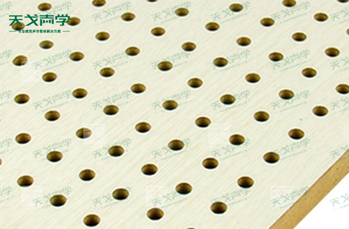 天戈孔狀吸音板飾面顏色及材料選擇性廣,孔徑、孔距可根據(jù)客戶要求調(diào)整,能很好地滿足客戶多樣化的聲學(xué)及裝飾需求。孔木吸音板對(duì)吸聲頻譜選擇性較強(qiáng),對(duì)中低頻有很好的吸聲性能。如在吸聲結(jié)構(gòu)后空腔上填入適量的吸聲棉可提高中、高頻吸聲效果。