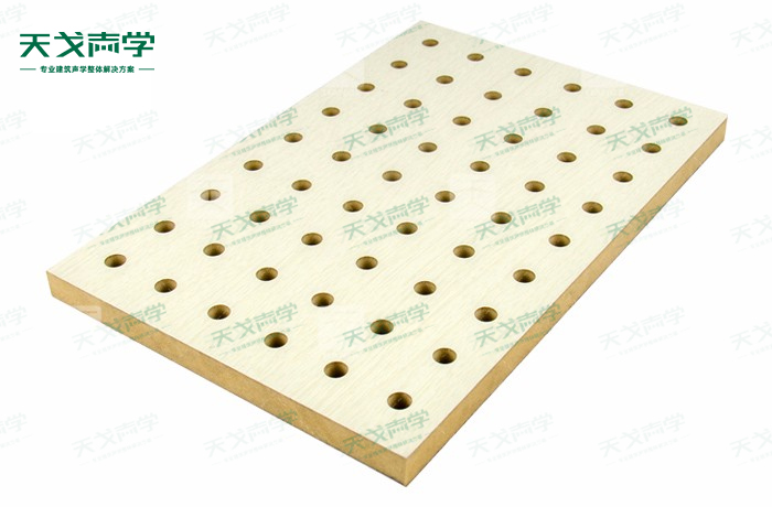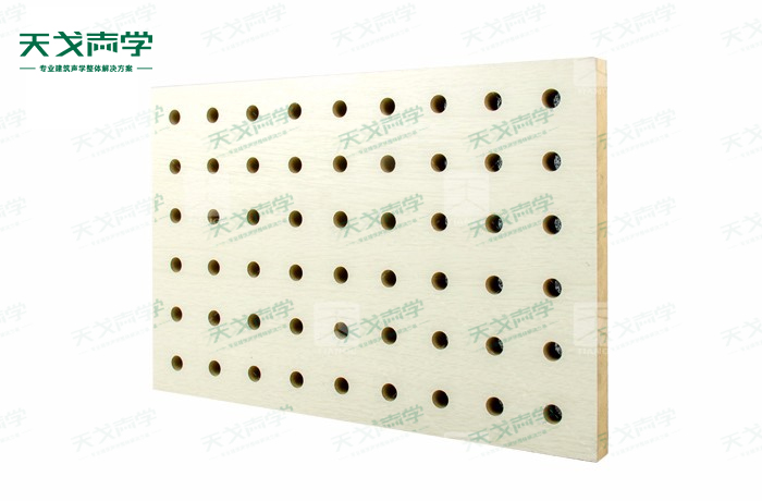 天戈環(huán)??啄?a href="http://m.caoyangyijia.cn/">吸音板飾面顏色及材料選擇性廣,孔徑、孔距可根據(jù)客戶要求調(diào)整,能很好地滿足客戶多樣化的聲學(xué)及裝飾需求。環(huán)保孔木吸音板對吸聲頻譜選擇性較強,對中低頻有很好的吸聲性能。如在吸聲結(jié)構(gòu)后空腔上填入適量的吸聲棉可提高中、高頻吸聲效果。