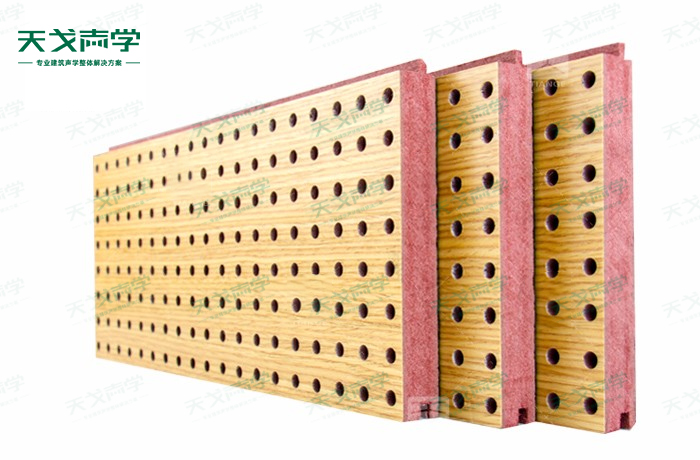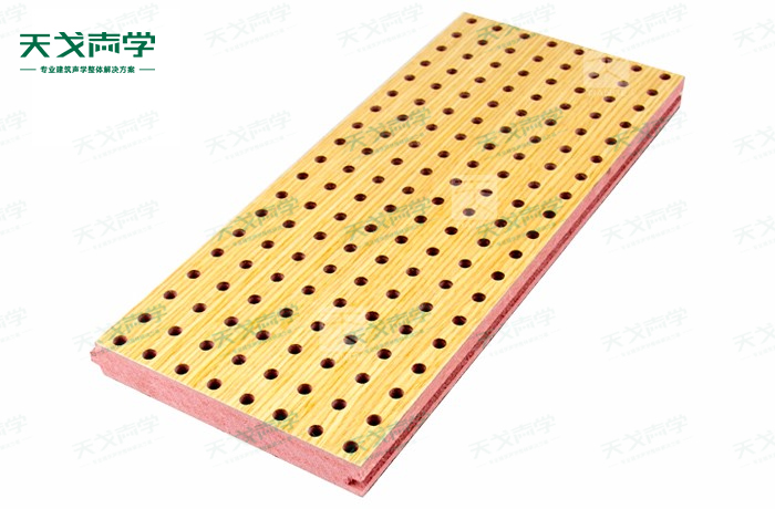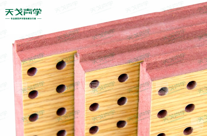 天戈阻燃孔木吸音板飾面顏色及材料選擇性廣,孔徑、孔距可根據(jù)客戶要求調(diào)整,能很好地滿足客戶多樣化的聲學及裝飾需求。孔木吸音板對吸聲頻譜選擇性較強,對中低頻有很好的吸聲性能。如在吸聲結(jié)構(gòu)后空腔上填入適量的吸聲棉可提高中、高頻吸聲效果。