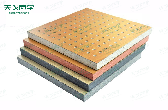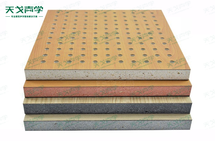 天戈穿孔玻鎂吸音板飾面顏色及材料選擇性廣,孔徑、孔距可根據(jù)客戶要求調(diào)整,能很好地滿足客戶多樣化的聲學(xué)及裝飾需求。穿孔玻鎂吸音板對吸聲頻譜選擇性較強(qiáng),對中低頻有很好的吸聲性能。在吸聲結(jié)構(gòu)后空腔上填入適量的吸聲棉可以提高中、高頻吸聲效果。天戈穿孔玻鎂吸音板包括以下3種不同玻鎂基材: