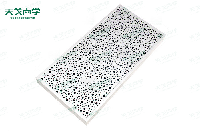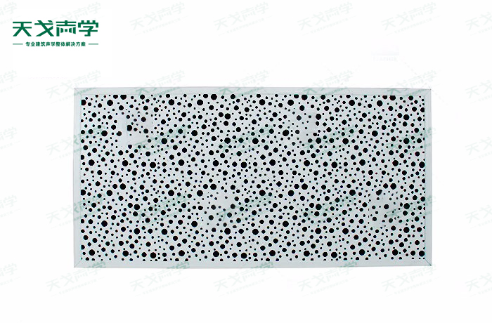 大小孔空間吸聲體是一種懸掛在頂棚具有高效吸收性能的吸聲材料。大小孔空間吸聲體一般水平或者垂直吊掛。大小孔空間吸聲體面積占頂棚總面積的30%-45% 時,其材料的吸聲性能較其他聲學(xué)材料好。
