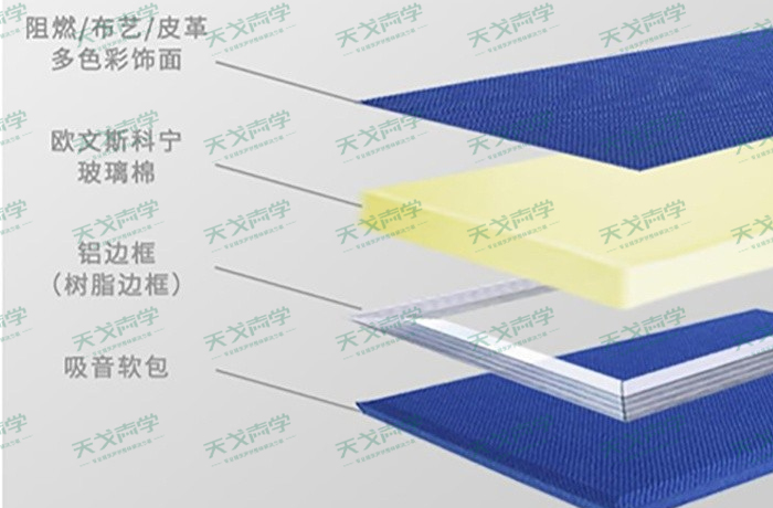 采用優(yōu)質(zhì)的歐文斯科寧玻璃吸音棉。具有環(huán)保、防火、吸聲頻帶寬、裝飾性強(qiáng)、施工簡單、無粉塵污染等性能,飾面顏色及材料選擇性廣,能很好地滿足客多樣化的聲學(xué)及裝飾需求。