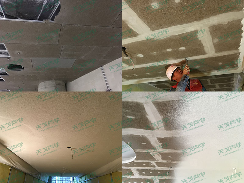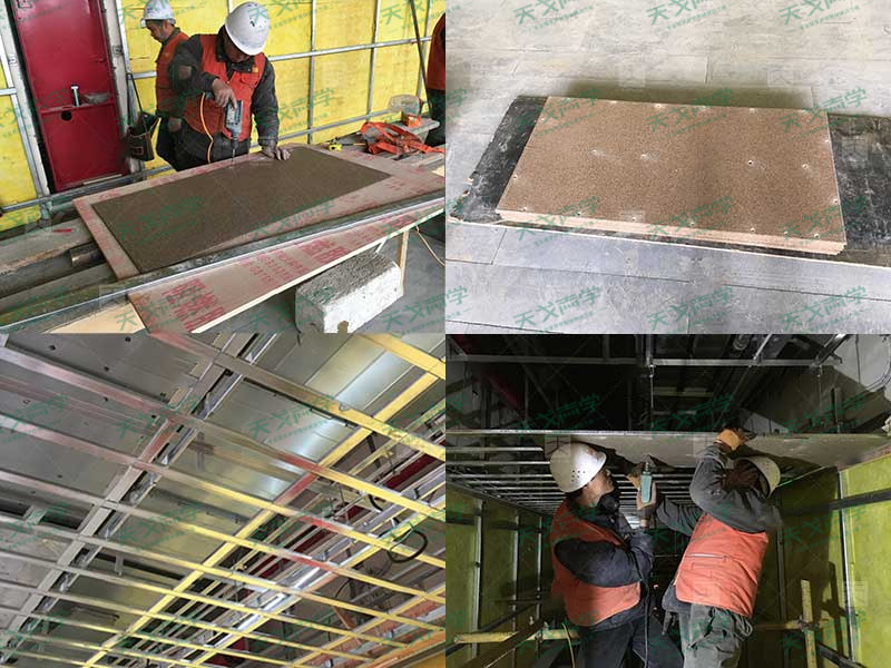 針對(duì)廊坊大劇院這個(gè)項(xiàng)目,天戈聲學(xué)在材料的選擇上非常慎重,根據(jù)相關(guān)標(biāo)準(zhǔn)和規(guī)定,劇院的材料要求觀眾廳的天棚、墻面、地面裝修材料不應(yīng)低于A1級(jí),當(dāng)采用B1級(jí)裝修材料是應(yīng)設(shè)置相當(dāng)?shù)南涝O(shè)施;頂棚、墻面裝飾采用的龍骨材料均應(yīng)為A級(jí)材料。