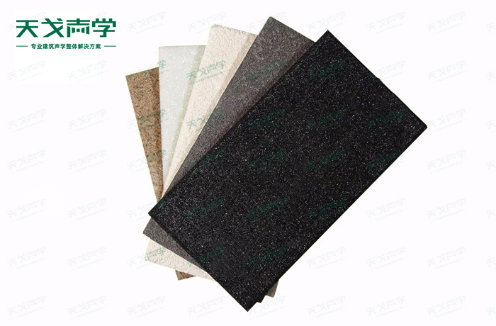 陶晶砂吸音板是由精選的天然的砂粒,通過(guò)膠凝材料聚合起來(lái)形成的特定目數(shù)的硬質(zhì)穿孔砂巖吸音板,可根據(jù)多孔吸音材料及微孔共振吸聲機(jī)理,通過(guò)調(diào)整孔隙大小、板材厚度及板后空腔大小,實(shí)現(xiàn)其頻率特性可調(diào)的功能,滿足不同頻段的吸聲設(shè)計(jì)要求。