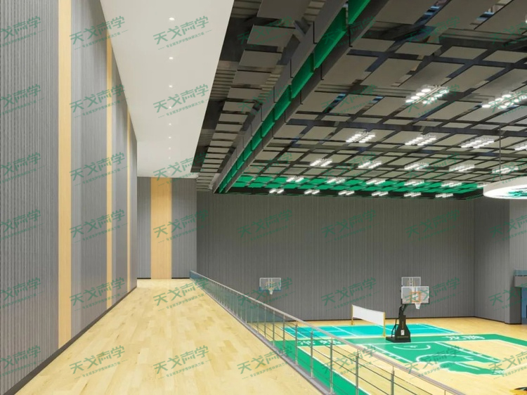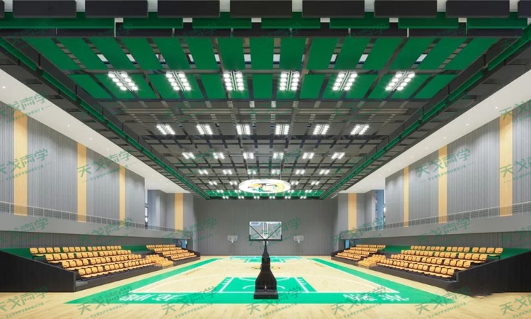 江蘇常熟龍騰體育館是一座新建的專業(yè)籃球館,要求可以適應(yīng)場(chǎng)館比賽、訓(xùn)練及娛樂的聲學(xué)要求。在項(xiàng)目建設(shè)階段,聲學(xué)環(huán)境整體解決方案服務(wù)商天戈聲學(xué)為該體育館提供一體化聲學(xué)服務(wù),包括聲學(xué)方案設(shè)計(jì)、聲學(xué)材料生產(chǎn)以及安裝施工。