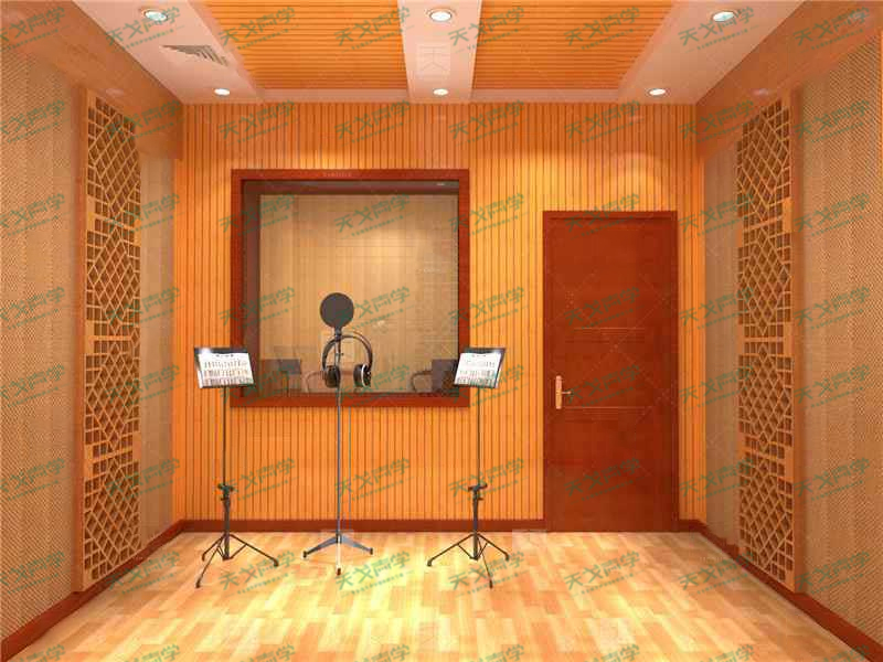 錄音棚的隔音采用了我司隔音量高的阻尼隔音板、隔音氈、隔音棉,整個房間做成房中房的結構,地面采用隔音減震膠做減震處理。吸音處理方面,飾面采用了A級防火陶鋁吸音板、QRD聲學擴散體、聲學反射板等吸音材料。