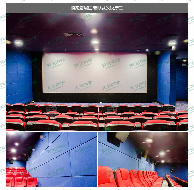 經(jīng)研究決定,該影城采用了天戈聲學(xué)生產(chǎn)的軟包吸音板2000多平方米,利用軟包吸聲材料消除觀眾廳聲聚焦、顫動(dòng)回聲、多重回聲等聲學(xué)缺陷;減少了噪聲對擴(kuò)聲系統(tǒng)的聲干擾,營造了一個(gè)良好的視聽效果。項(xiàng)目完工后得到客戶的一致認(rèn)可與好評!