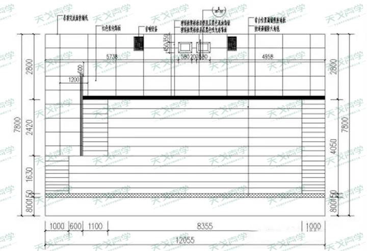 根據(jù)專業(yè)軟件計(jì)算及綜合到墻面,地面材料的墻面,天花不必采用強(qiáng)吸音材料,因此考慮成本問題,建議天花進(jìn)行石膏板造型裝飾處理。